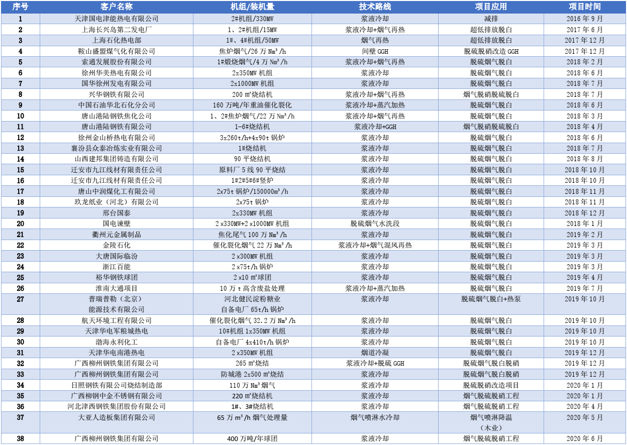 天津華賽爾傳熱設備有限公司煙氣脫白典型業績表